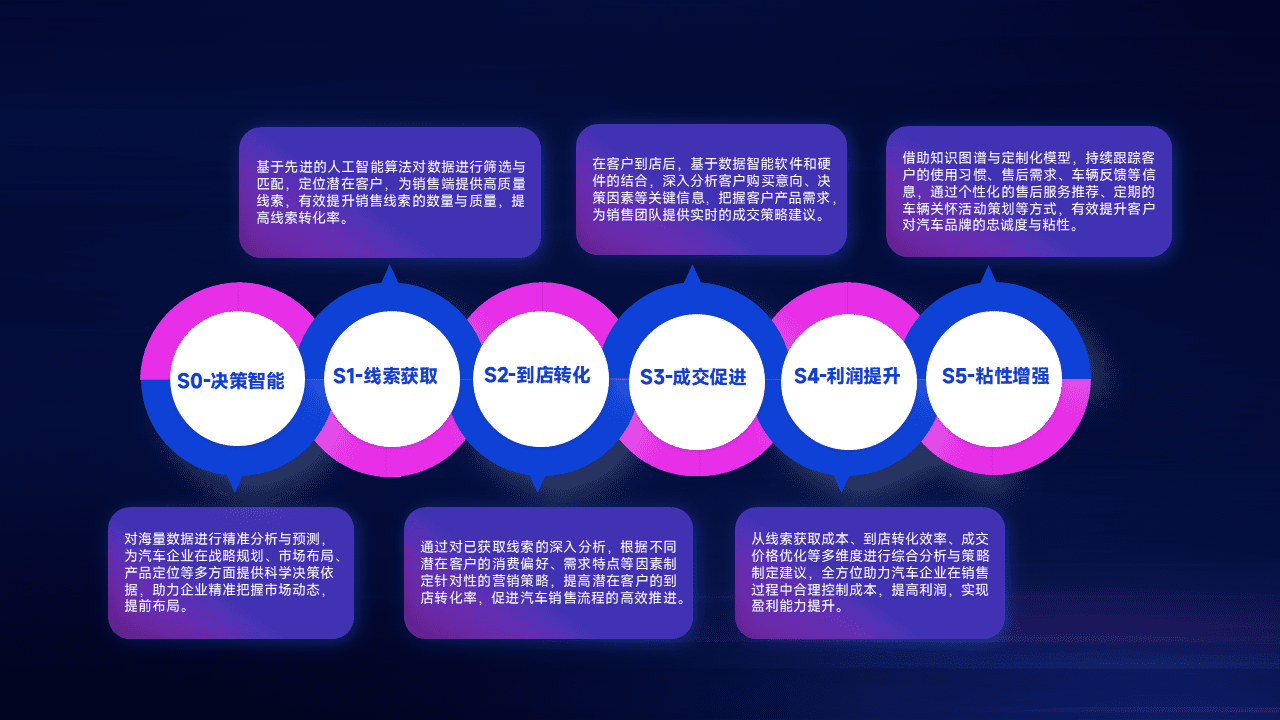 通过拓宽潜在客户来源、、、、优化线索分配并提高到店转化率,,,,以增强销售效率。。。。同时,,,,利用线索数据不断优化分析模型,,,有效提升转化率,,,扩大营销影响力。。。